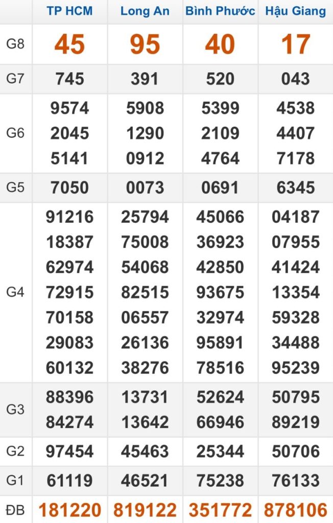 Chốt số chi tiết xổ số TP Hồ Chí Minh 20/12