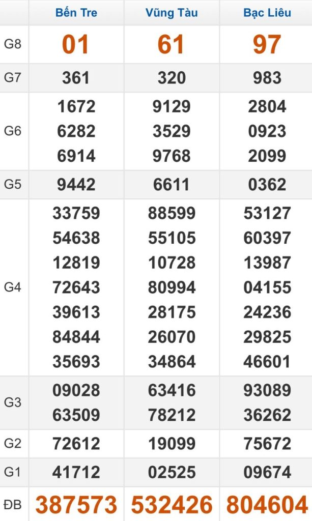 Chốt số chi tiết xổ số Bạc Liêu 23/12