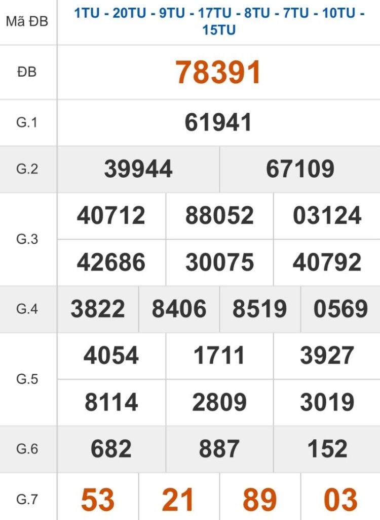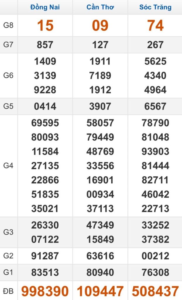 Tuần trước giải 8 của Cần Thơ là con 85 nên hãy chọn con lô là 30 – 03 – 49 – 94. Đề về 89 là dấu hiệu con lô 94 – 31 – 10 – 35 sẽ về nên hãy cân nhắc.