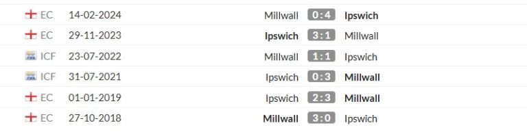 Xét về lịch sử đối đầu, Millwall và Ipswich Town thường tạo ra những trận đấu khá cân bằng và chặt chẽ. Trong 10 lần gặp nhau gần nhất tại Championship, mỗi đội giành được số chiến thắng không quá chênh lệch, với khá nhiều trận kết thúc bằng tỷ số hòa hoặc cách biệt tối thiểu.