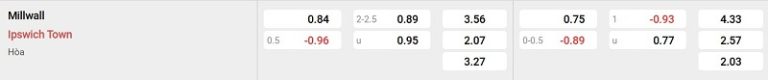 Bảng tỷ lệ kèo Millwall vs Ipswich Town: