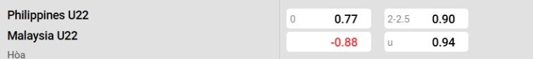 Bảng tỷ lệ kèo Philippines vs Malaysia: