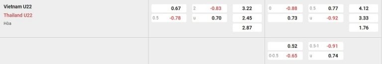 Bảng tỷ lệ kèo Việt Nam vs Thái Lan:
